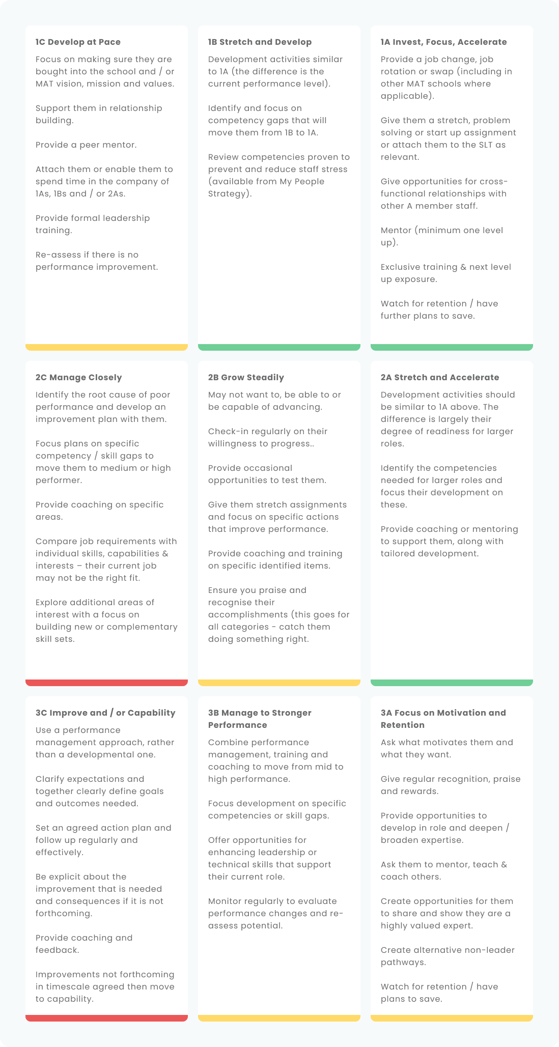 Below you will find a final grid with suggestions for actions you can take for staff in each category within the My People Strategy grid.